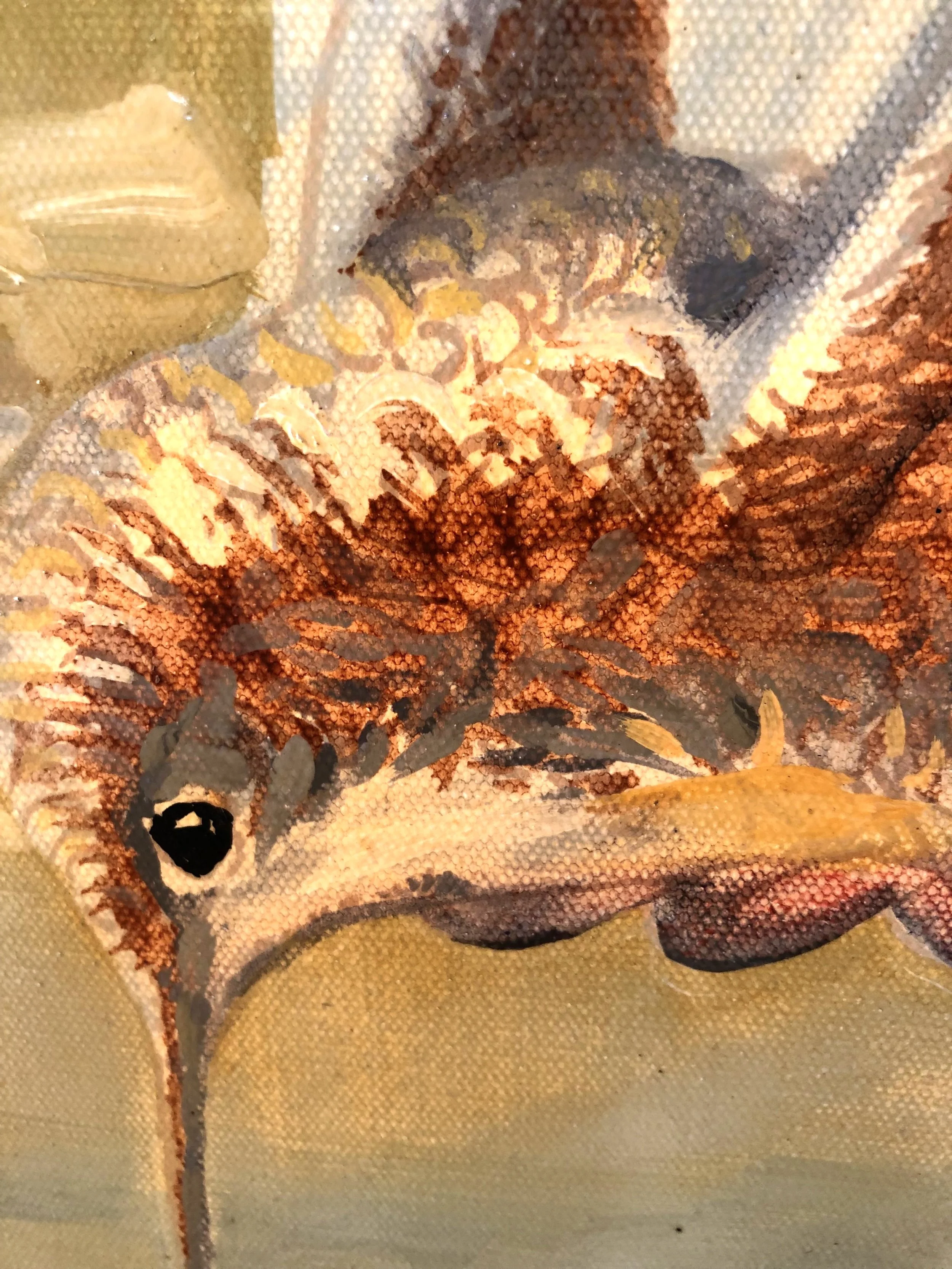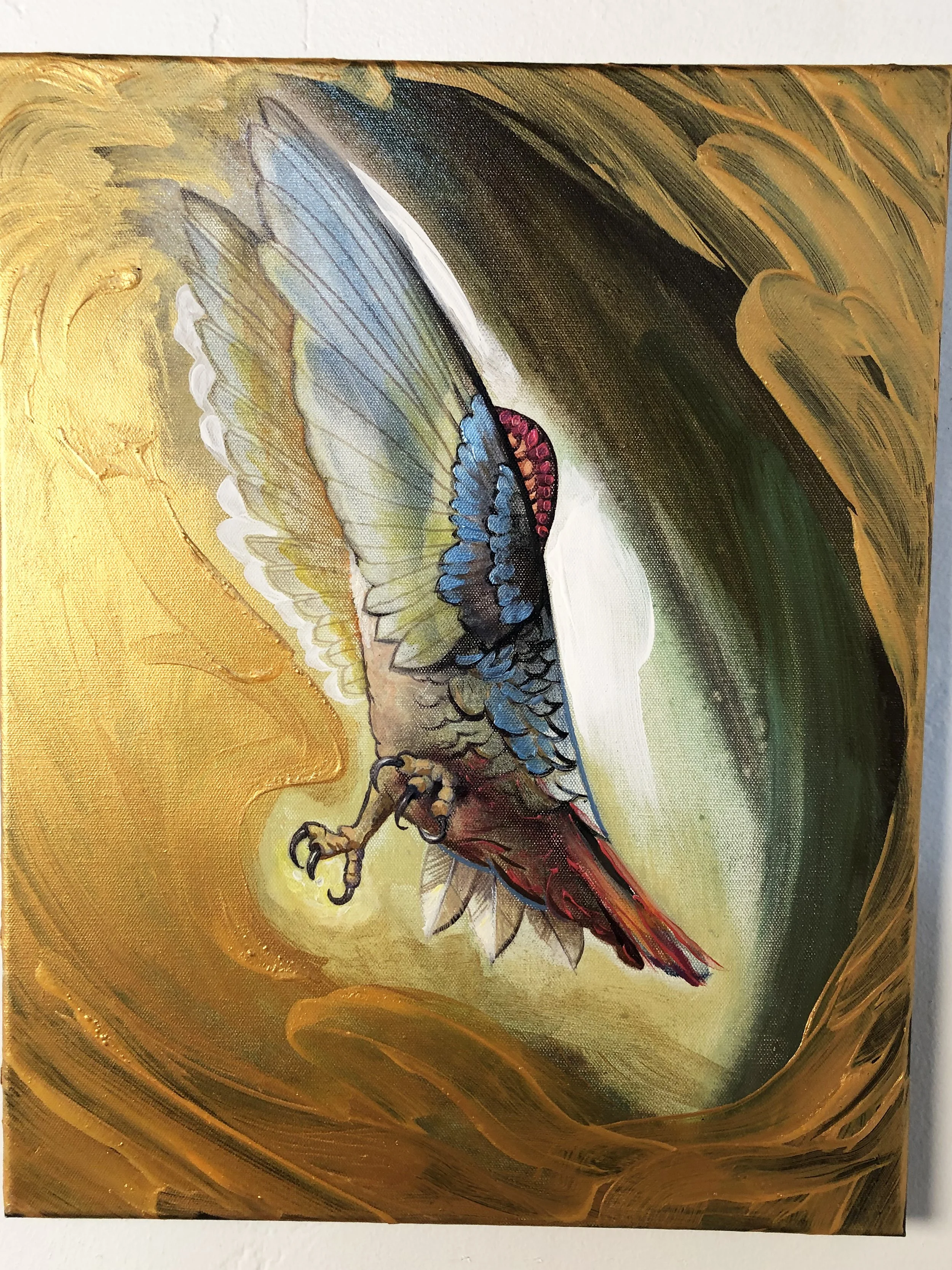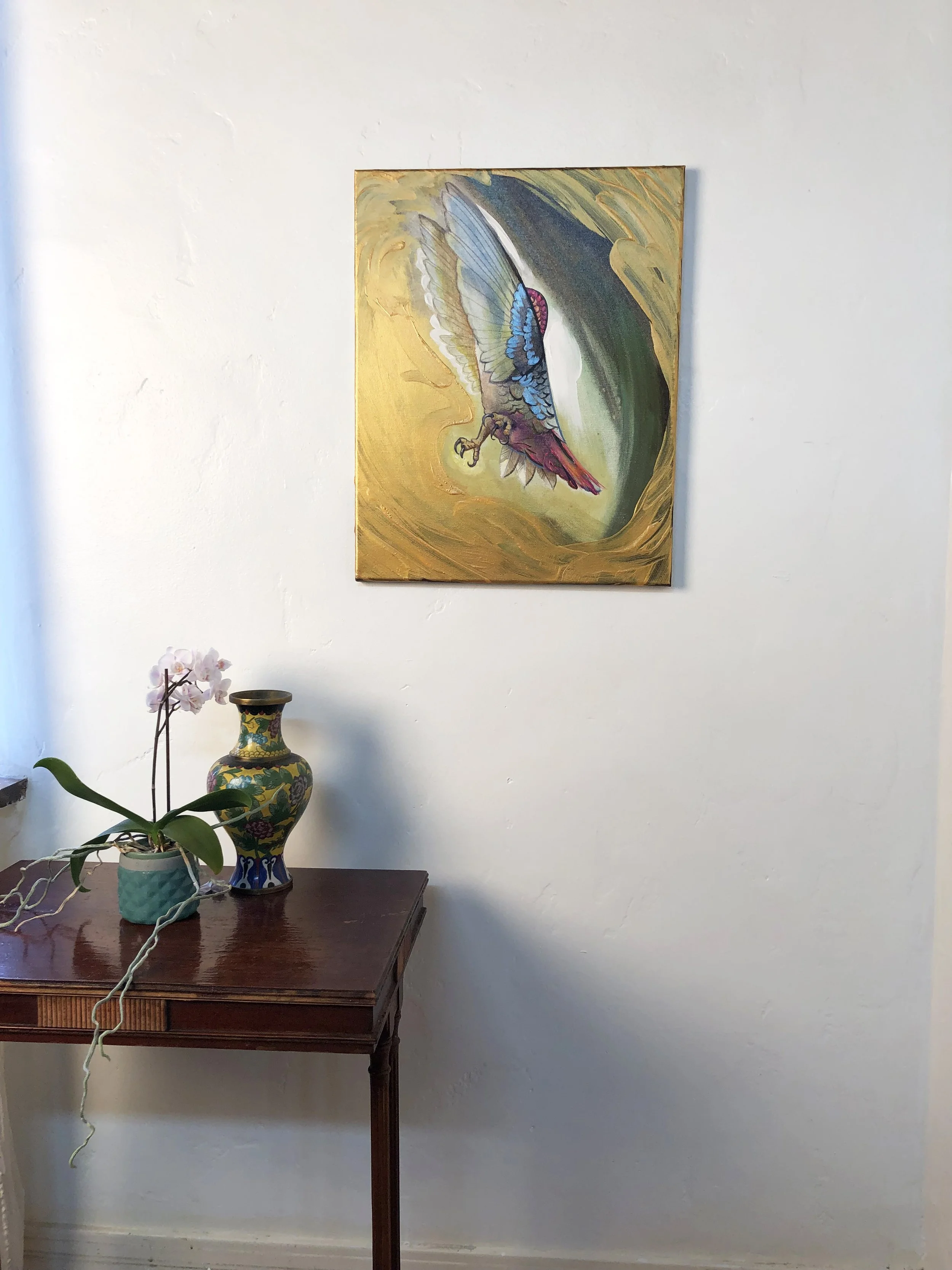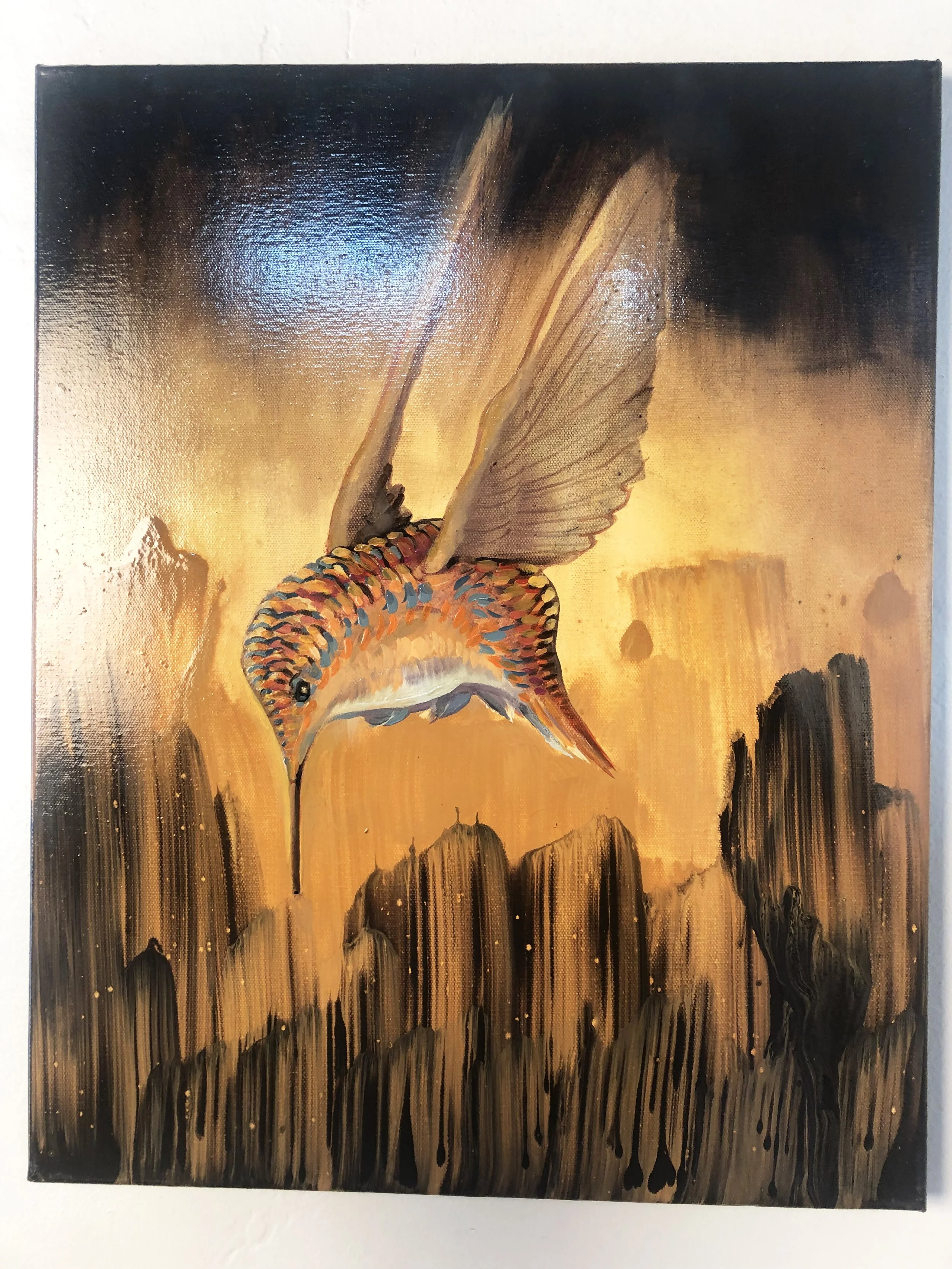 “These ocean paintings are a visceral response on my part, to point out that the oceans, and the creatures in it, are both alien to us, and at the same time our brothers and sisters, evolved from the same chain of evolution.  Go diving , and look in the eyes of a harbor seal, or feel the baby octopus clinging to you for protection; these are strikingly beautiful things with souls, communicating with us.”