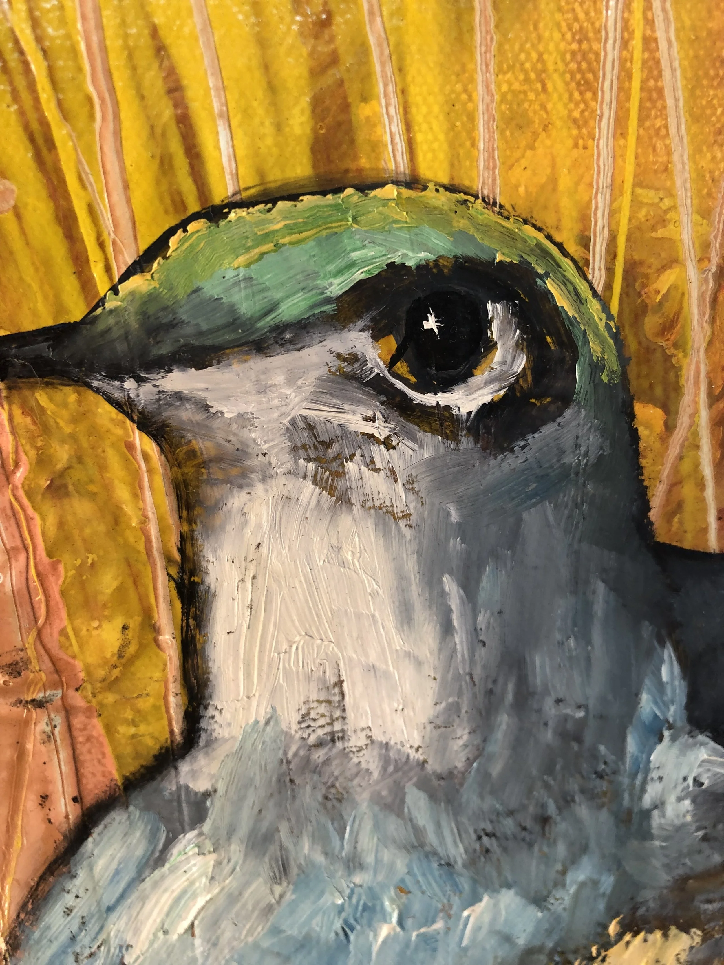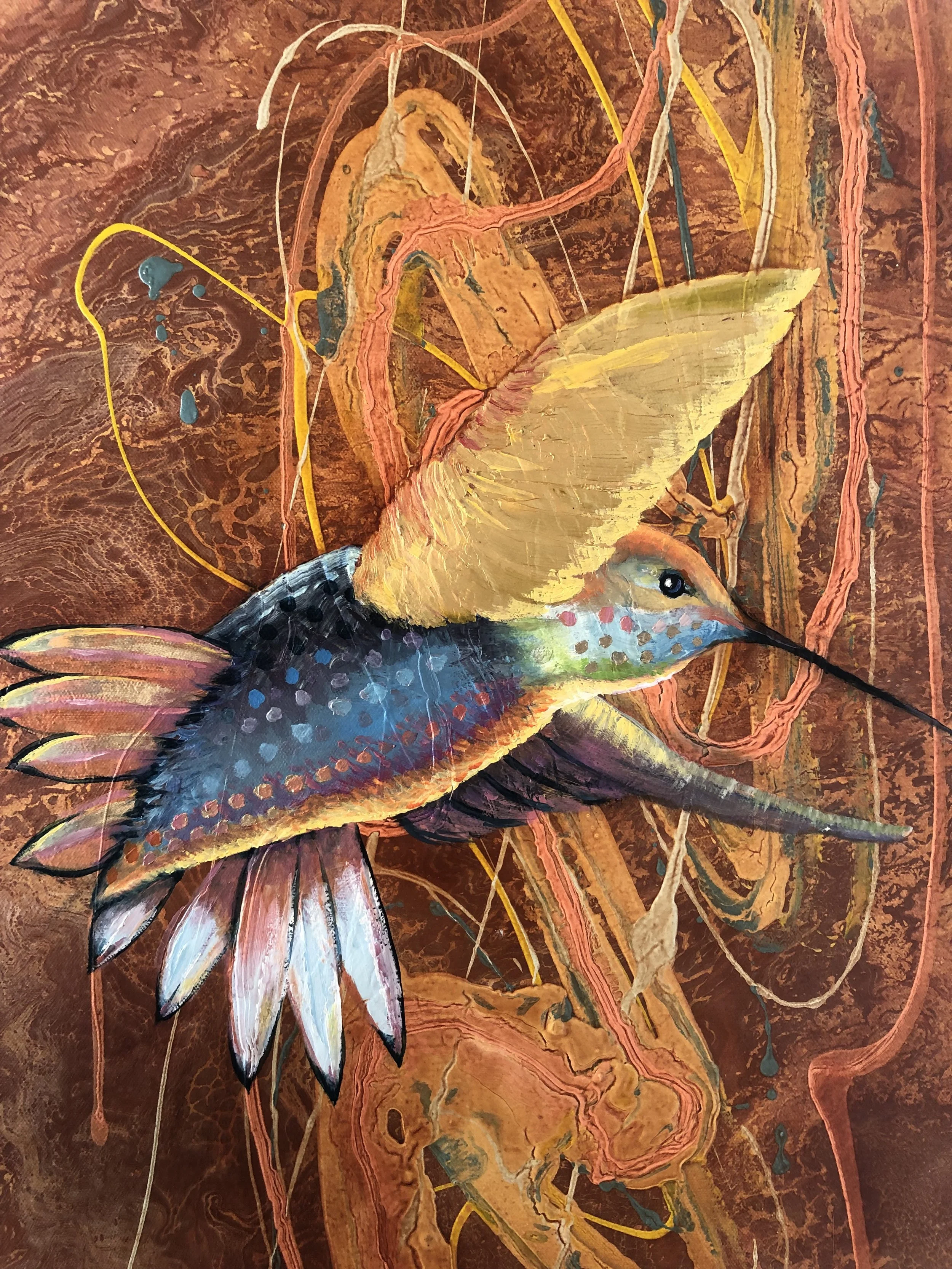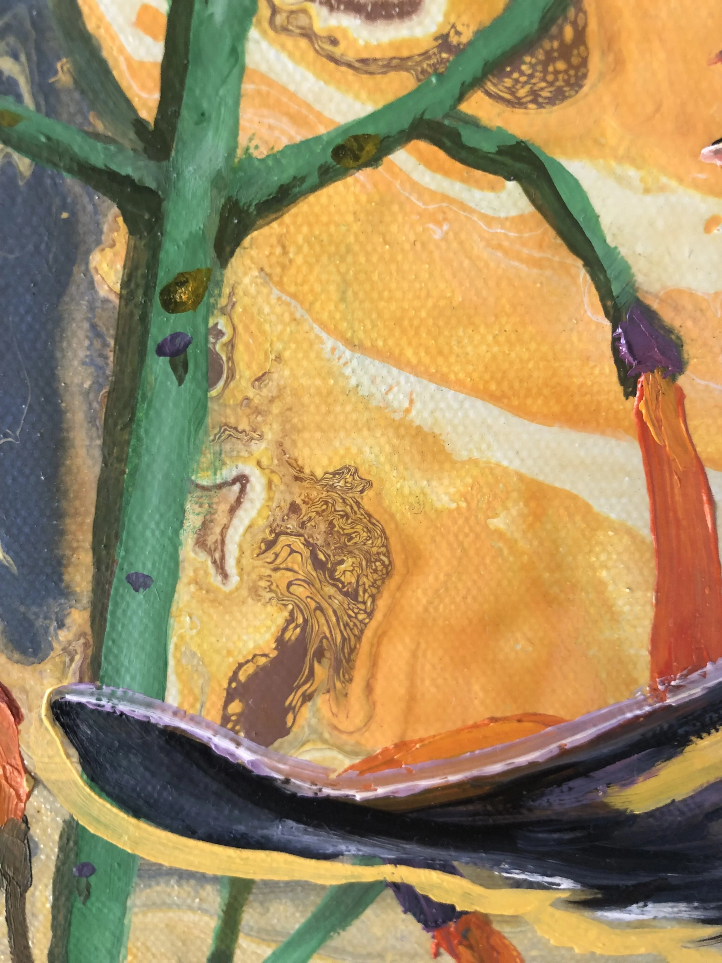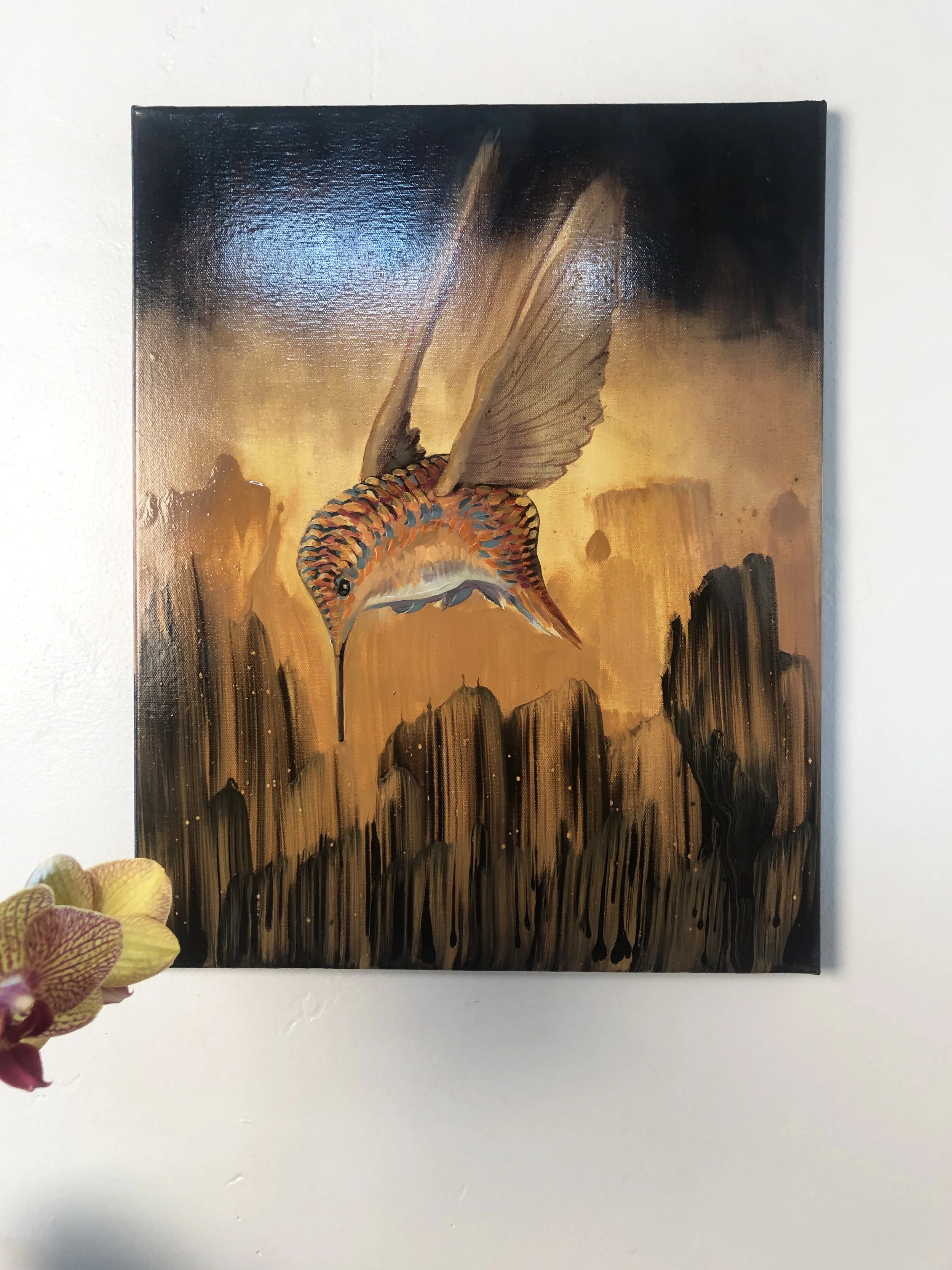 “These ocean paintings are a visceral response on my part, to point out that the oceans, and the creatures in it, are both alien to us, and at the same time our brothers and sisters, evolved from the same chain of evolution.  Go diving , and look in the eyes of a harbor seal, or feel the baby octopus clinging to you for protection; these are strikingly beautiful things with souls, communicating with us.”