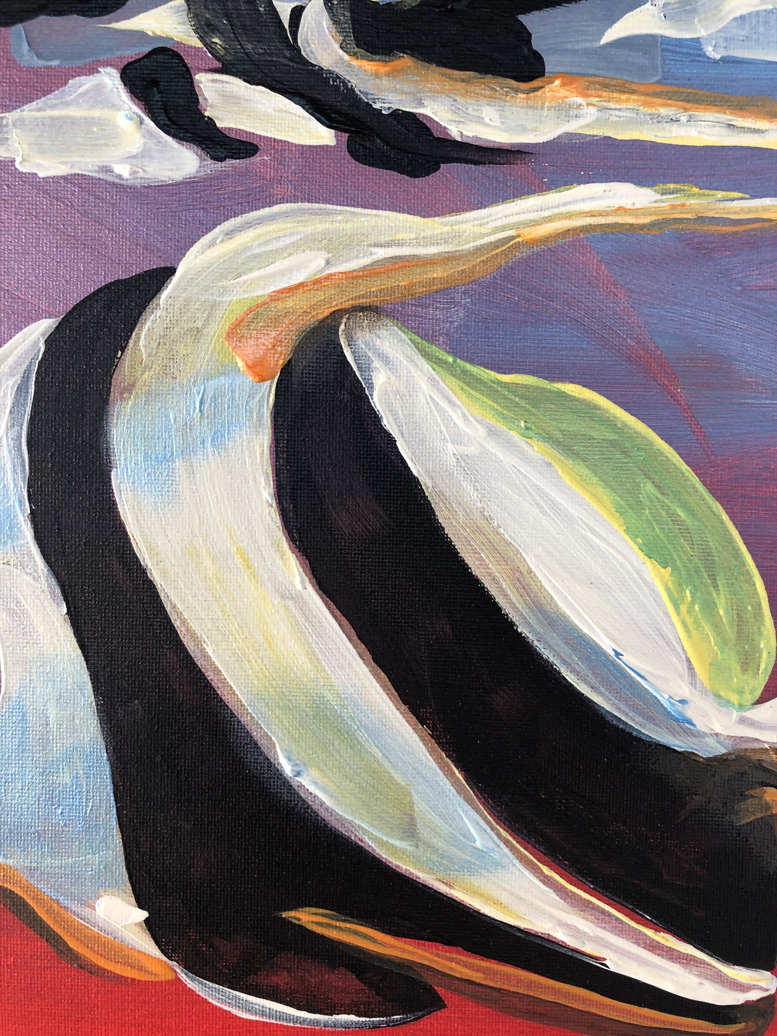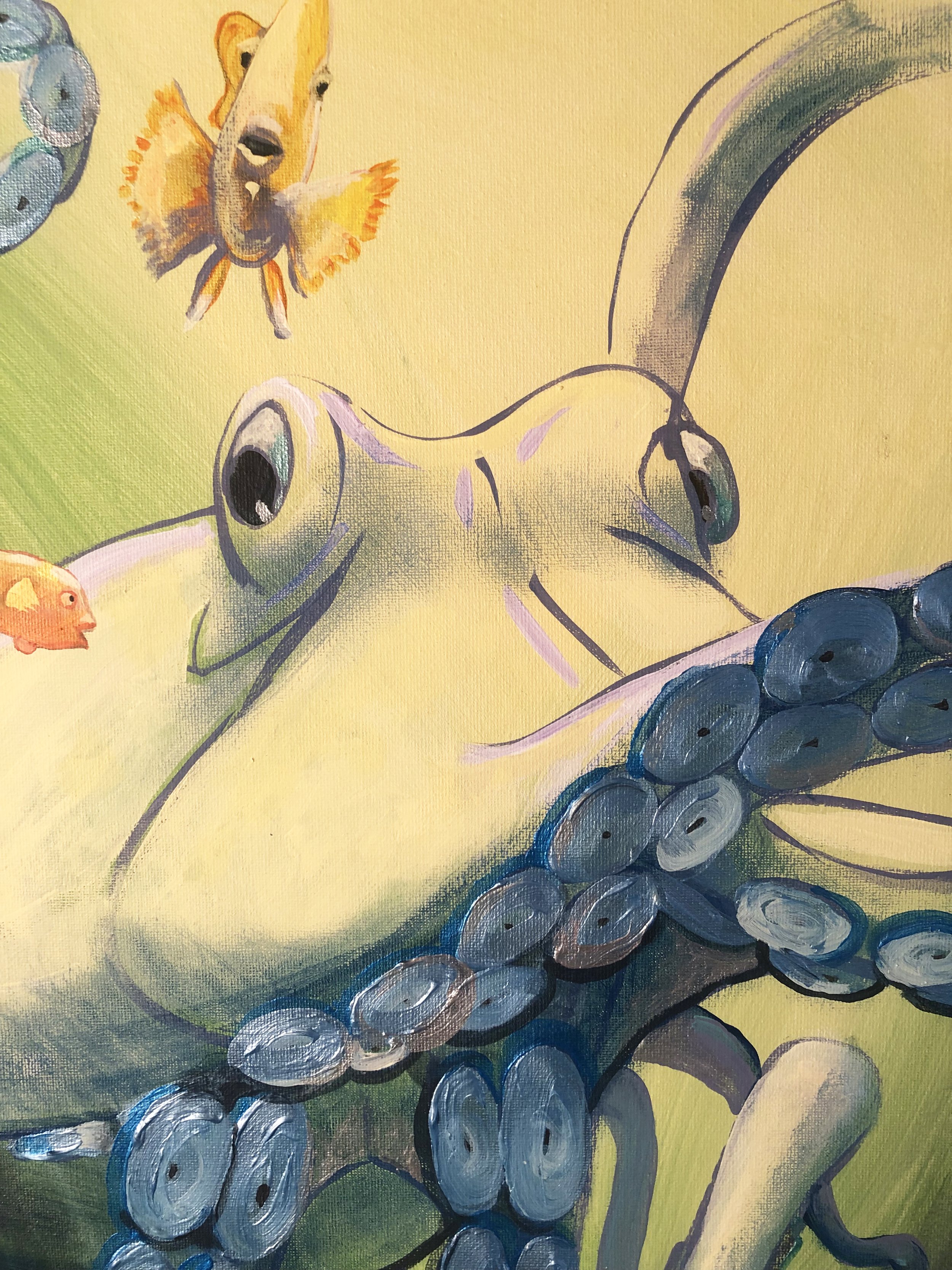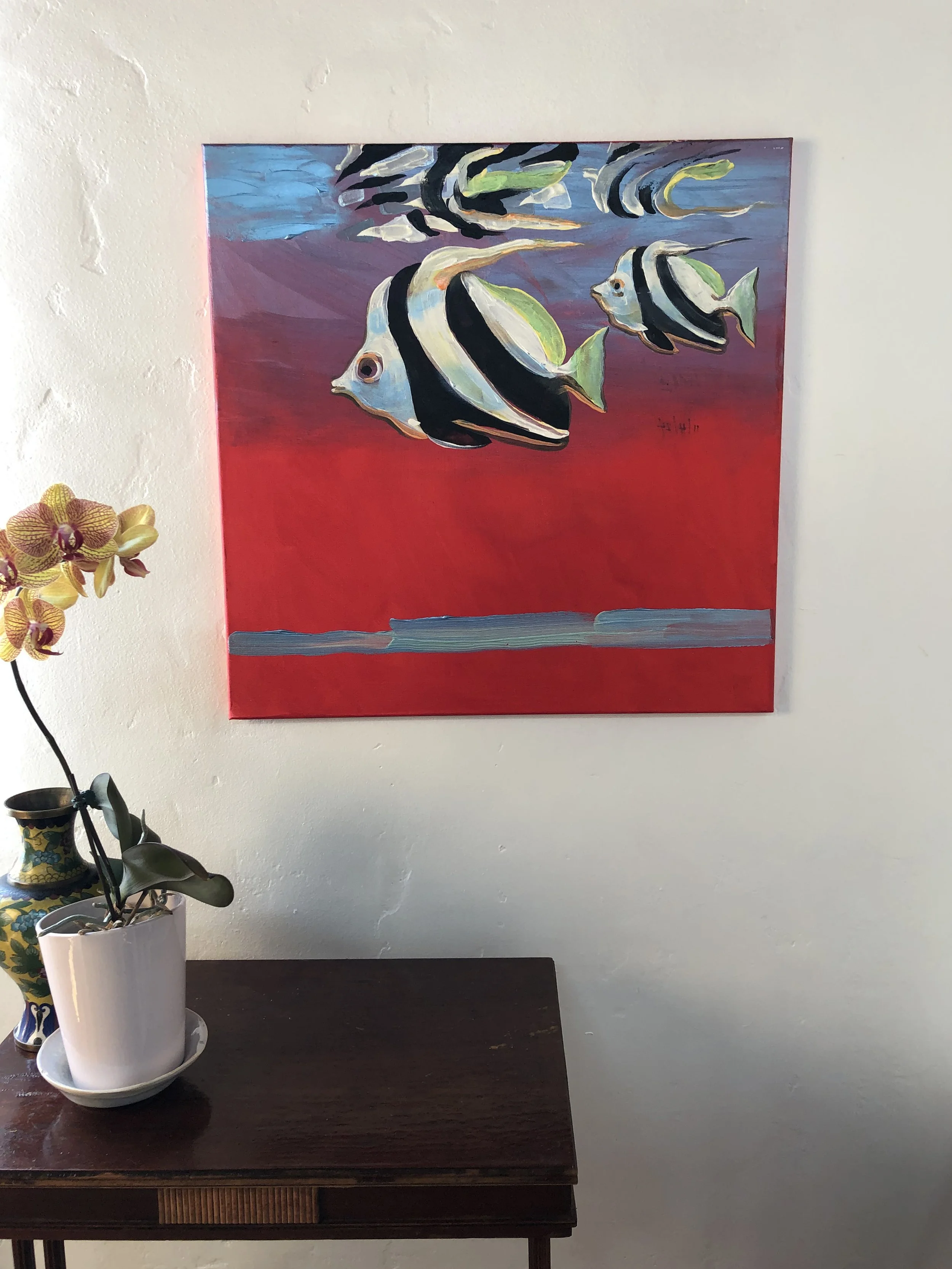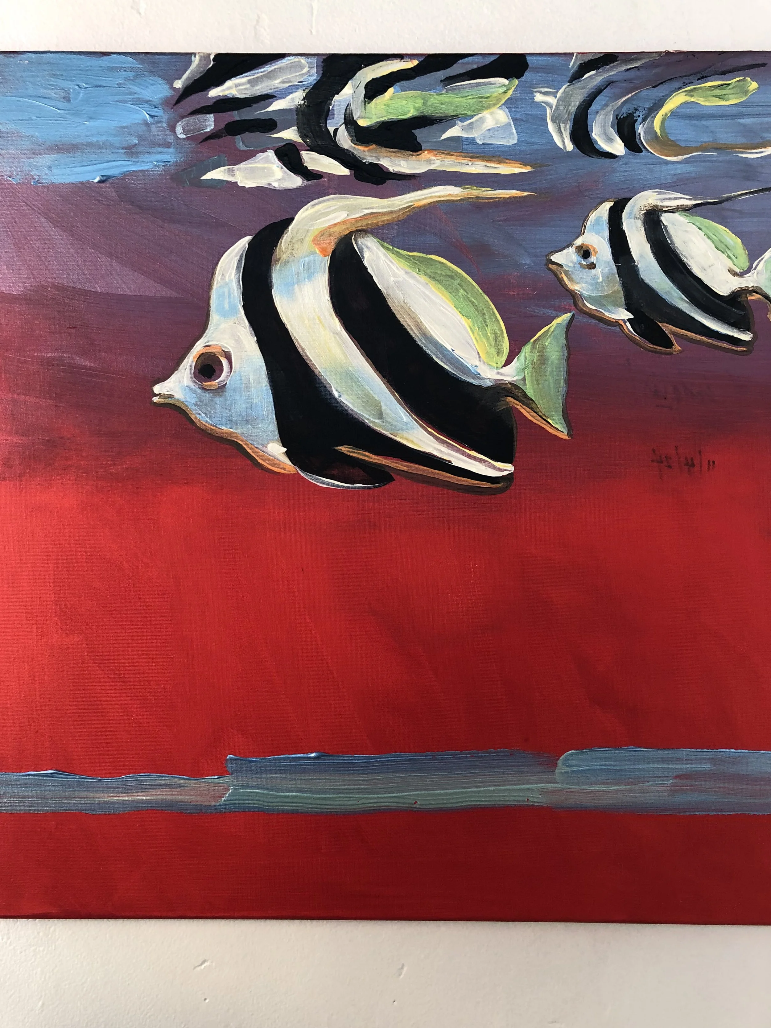 “These ocean paintings are a visceral response on my part, to point out that the oceans, and the creatures in it, are both alien to us, and at the same time our brothers and sisters, evolved from the same chain of evolution.  Go diving , and look in the eyes of a harbor seal, or feel the baby octopus clinging to you for protection; these are strikingly beautiful things with souls, communicating with us.”